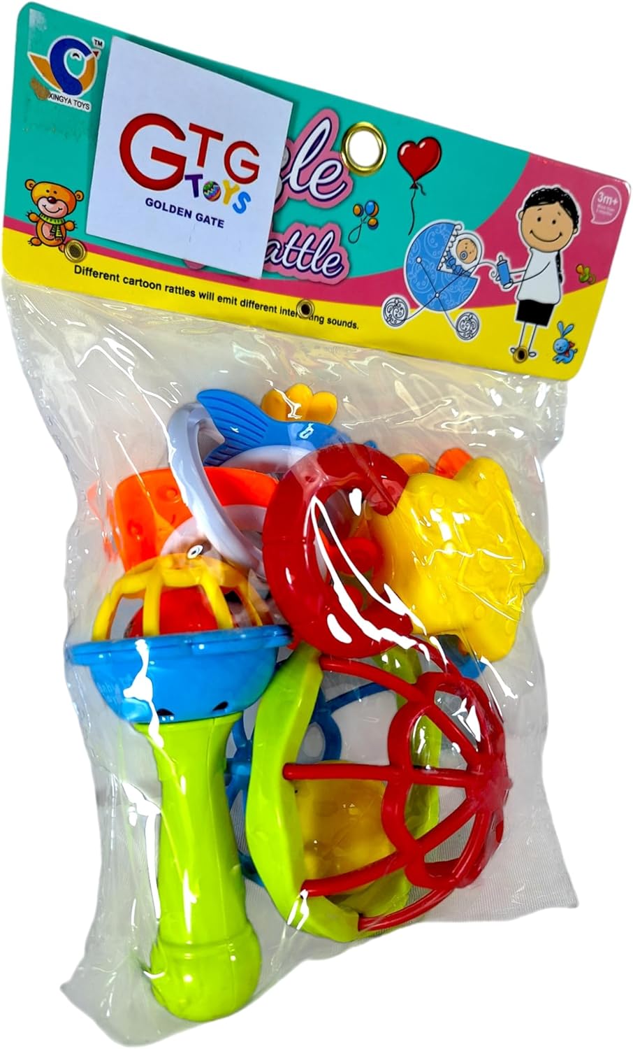 • PACKAGE CONTENTS: Set includes 6 colourful baby rattles with different shapes and textures for sensory development