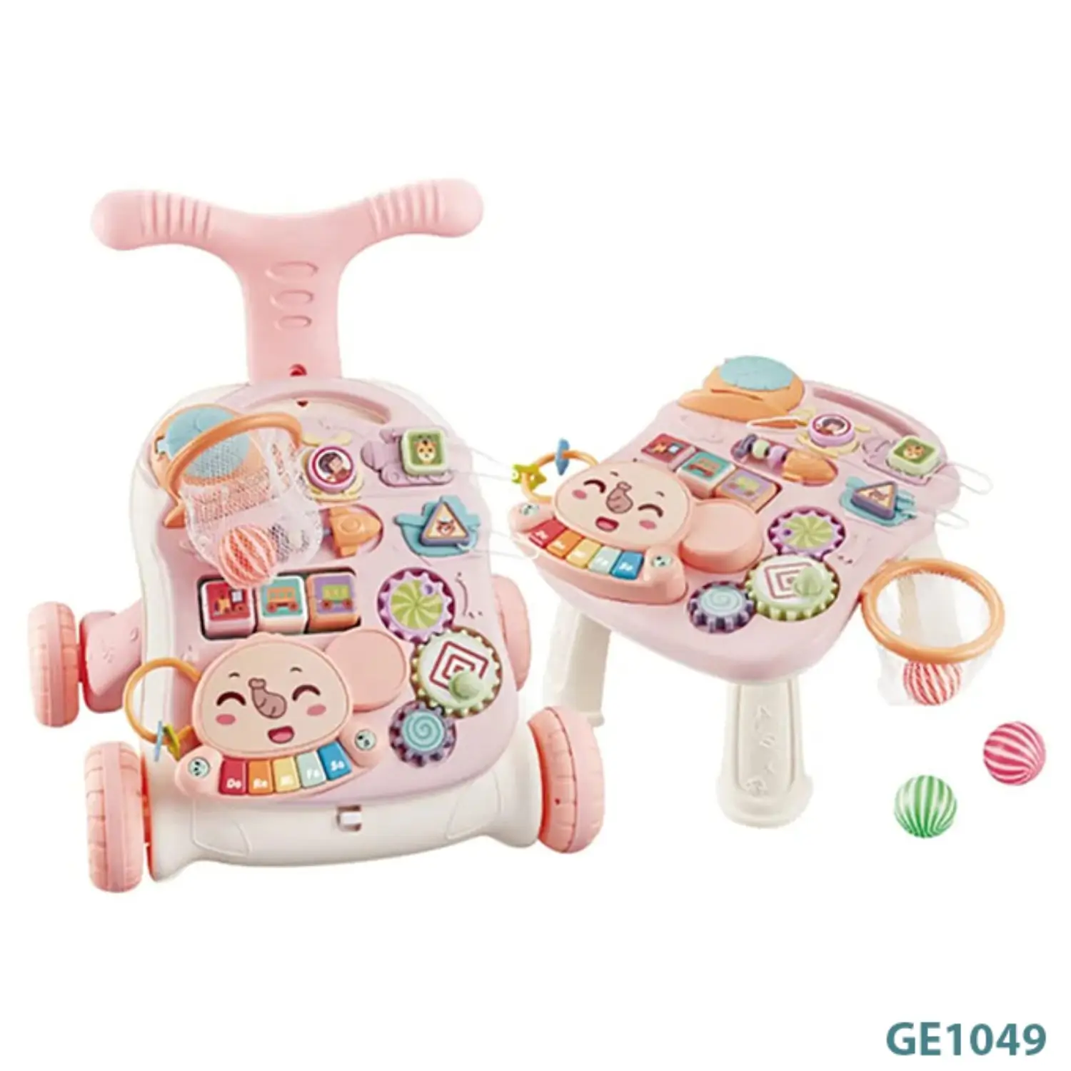 تجمع هذه المشاية بين وظيفتي المشي واللعب في تصميم واحد أنيق وعصري.