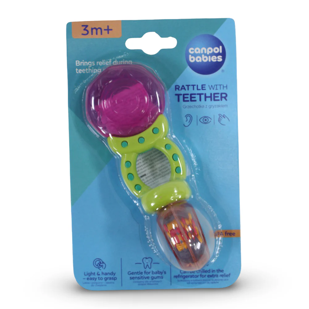 • Textured biting areas → help massage gums and ease discomfort