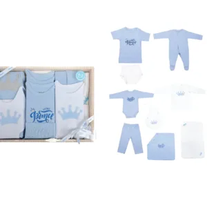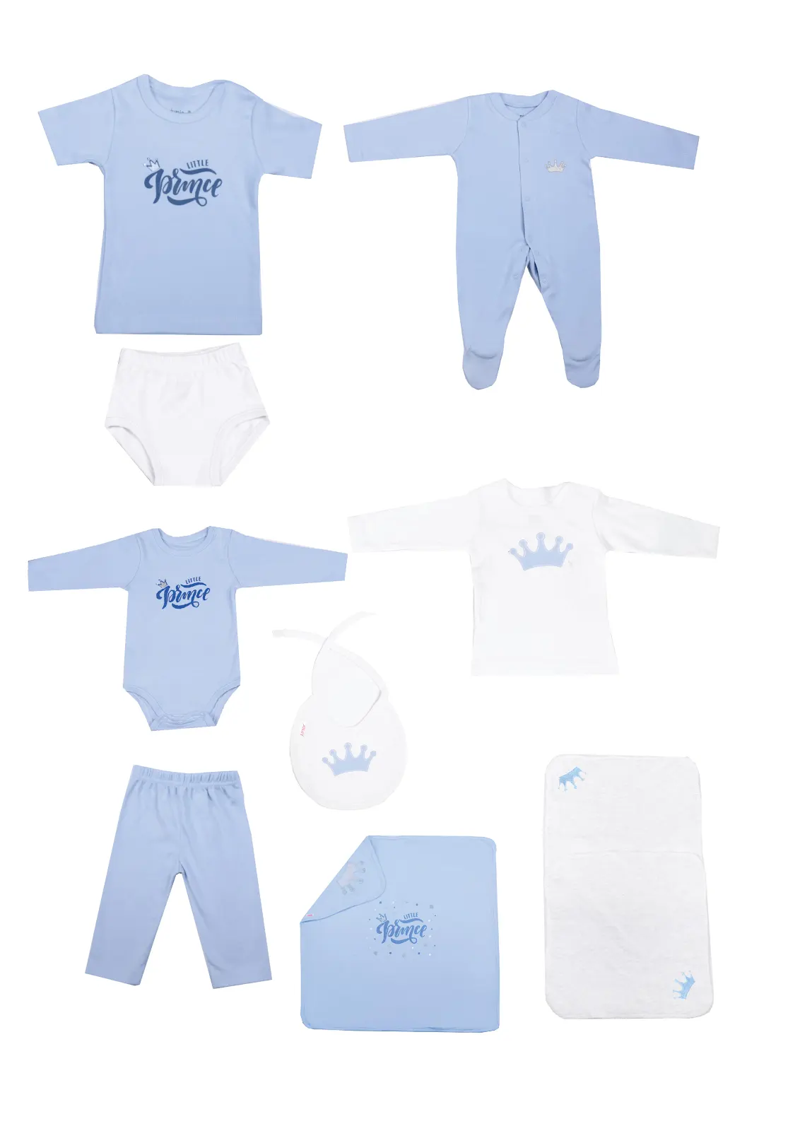 Includes 10 matching essentials → bodysuits, pants, bibs, mittens, hats, and more