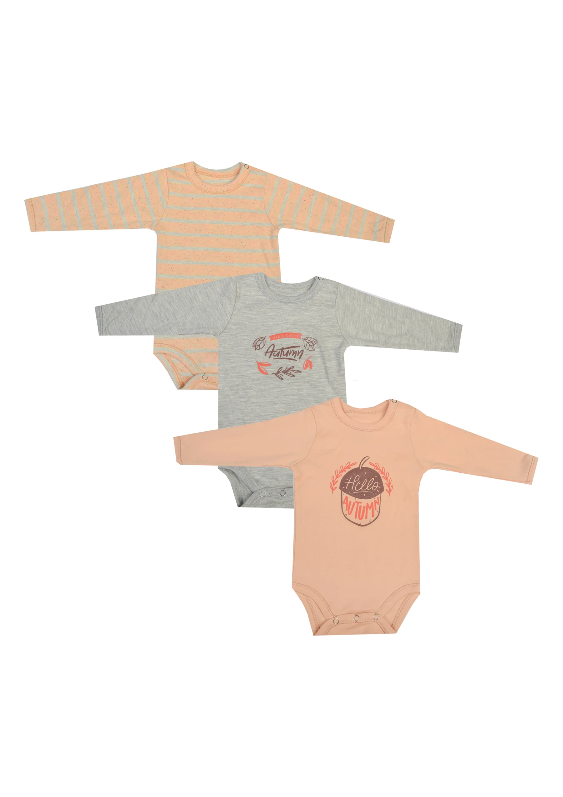 بدلة بيبي مطبوعة بأكمام طويلة من القطن المصري العضوي الفاخر، عبوة من 3 قطع