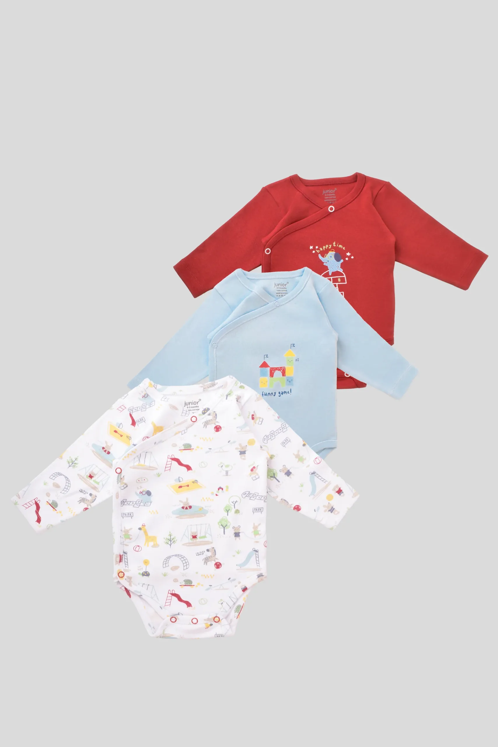 Be the first to review “Junior Baby Bodysuit Pack of 3 Long Sleeve” Cancel reply