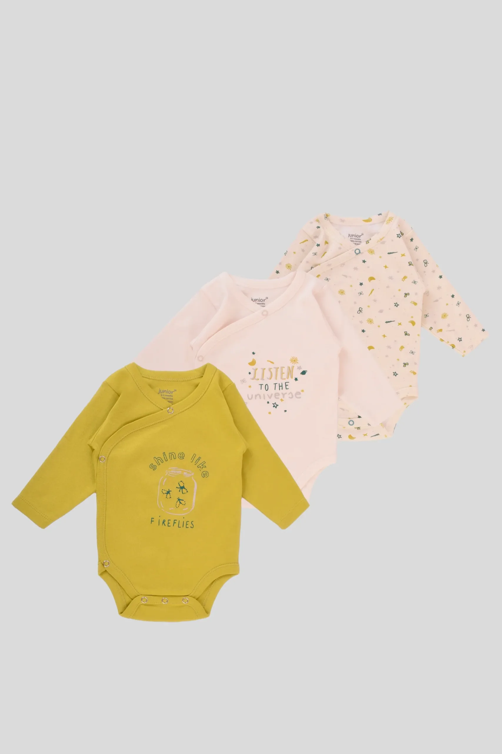 Junior Baby Bodysuit Pack of 3 Long Sleeve