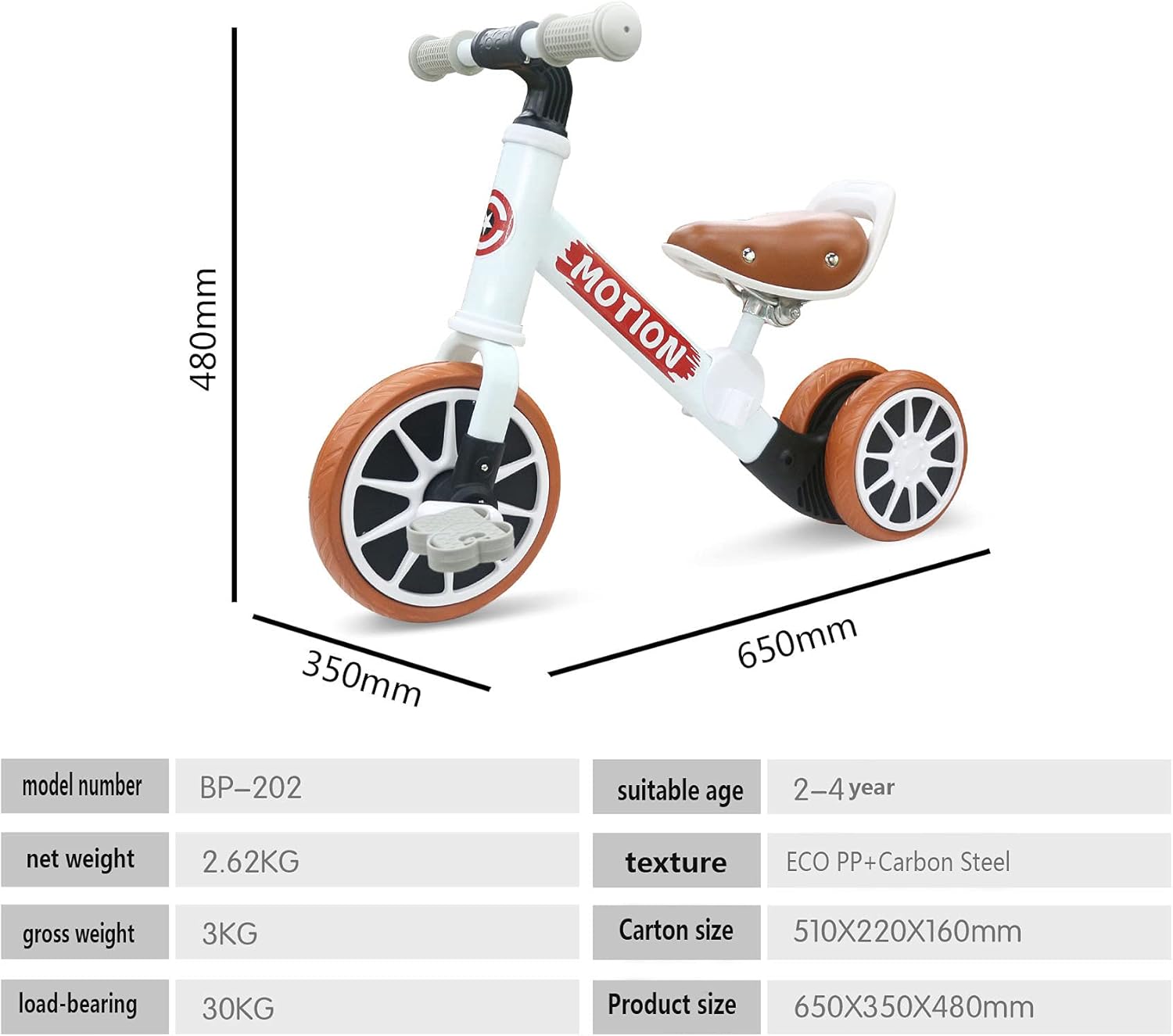 saddle ومقابض مصممة خصيصًا للراحة والأمان للأطفال الصغار. يمكن تخزين الدواسات تحت المقعد، مما يجعلها أكثر ملاءمة وليس من السهل فقدانها.